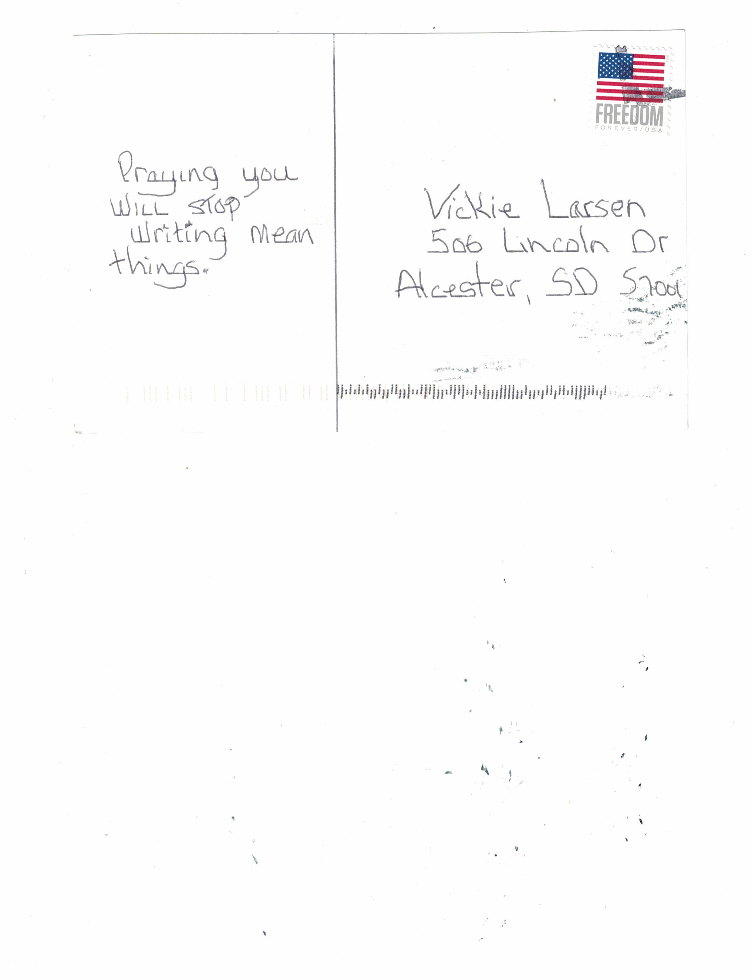 ¶16 “…And…by the way…a former Council Member said that Patty Jurrens did not have a degree, so she should not even be in that position. CHECK YOUR FACTS! She has a 4-year degree from USD in Accounting. Why are untruths allowed to be stated without corrections? I would like some Investigation as to where Lukas Driesen graduated from. I will check. Being a mayor is a very important position as well. And my personal experiences have shown me why he might not be the best thing for Alcester. ASK ME, and I will explain privately. I do not want to share personal issues in public. I prefer the positive over the negative. Always…”
